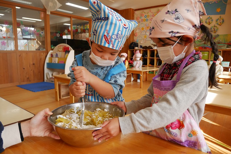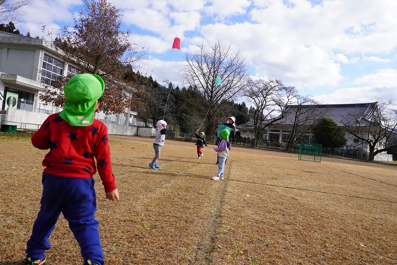 地域探検(散歩)に凧あげ、発表会にクッキング。友達と一緒にたくさんあそびました。