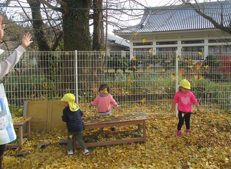 今年の初雪に大喜び。先生のお手伝いも上手にできます!大好きな先生と一緒に運動場でいっぱい体を動かしました。