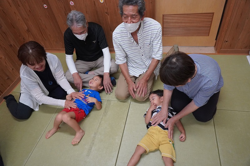 子ども達の大好きなおじいちゃん、おばあちゃんが園に来てくれました。触れ合いあそびをする、祖父母の皆さんと子ども達の笑顔がまぶしいです!!また来てね~