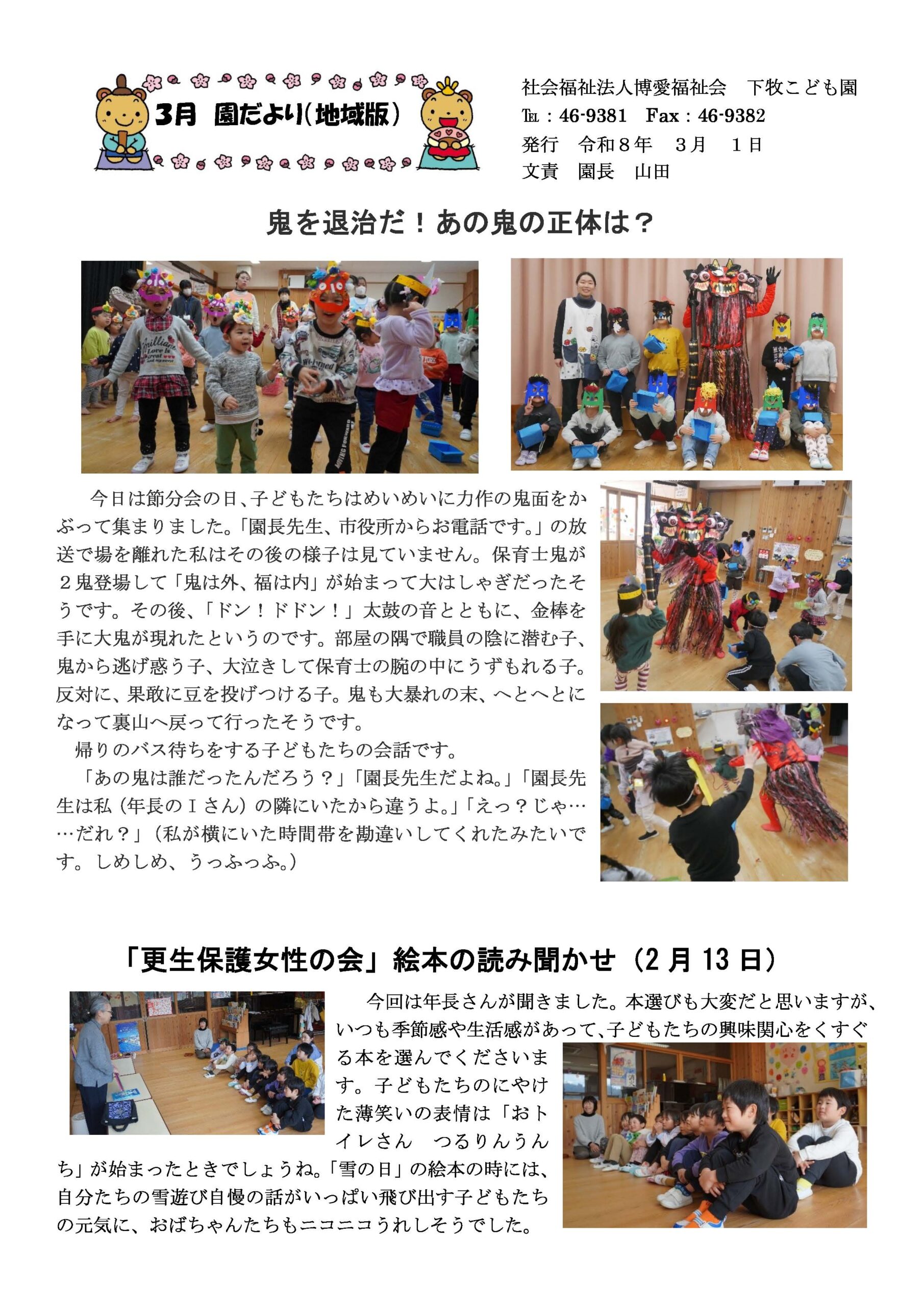 3月 下牧子ども園だより(前半)